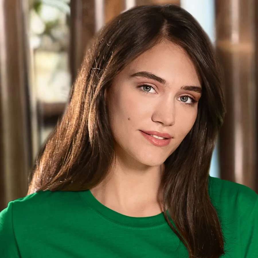 Das klassische Damen T-Shirt besteht aus Stoff mit einem Gewicht von 145g/m2. Es weist eine etwas geringere Grammatur auf als die am häufigsten verwendeten Stoffe für T-Shirts, die meist bei etwa 160 g/ liegen.