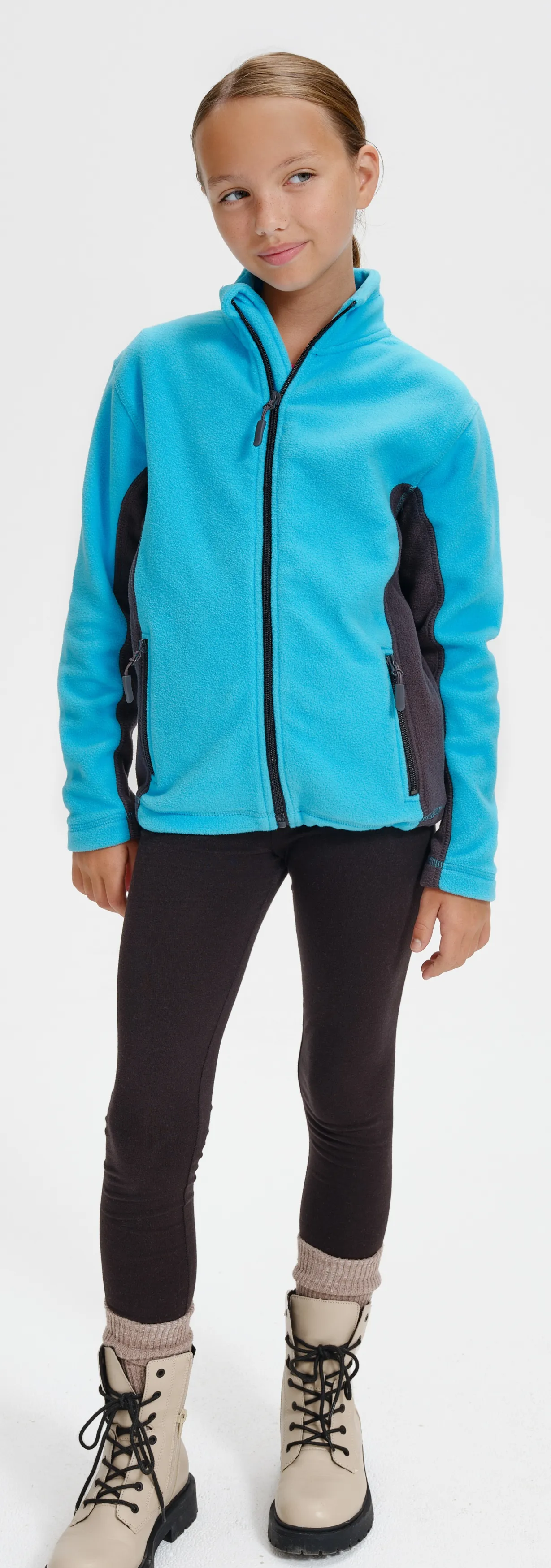 - Kinder Fleecejacke mit Kontrastelementen